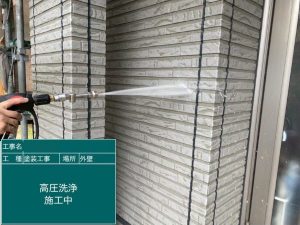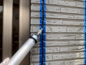 洗浄で汚れと旧塗膜を洗い流し、下塗りで下地を整えます。