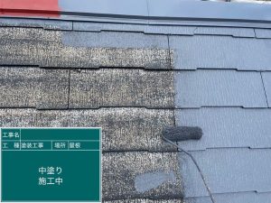 上塗りの塗料にはエスケー化研の「プレミアム無機ルーフ」を使用いたしました。