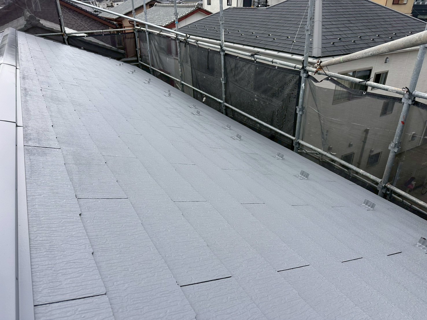 下塗りは、次におこなう、中塗りと上塗りを、屋根に密着させる役割があります。